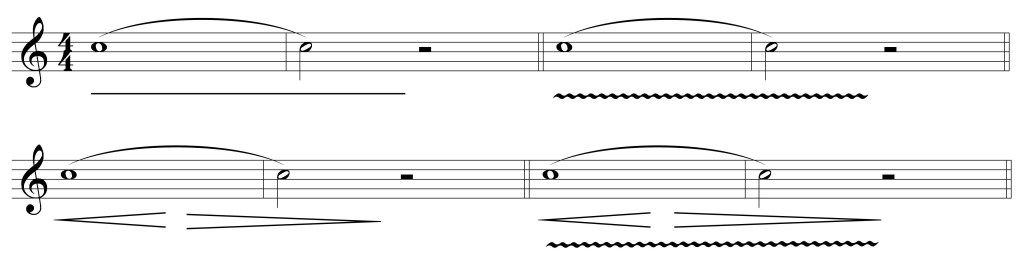 Estos ejercicios se pueden variar incluyendo cambios de intensidad o introduciendo el vibrato —o una combinación de ambos—. En todo caso, es necesario decidir de antemano qué se va a trabajar con el ejercicio y hacerlo de la forma más controlada posible, siendo conscientes de cada uno de los gestos implicados y de las correcciones que son necesarias en cada caso.