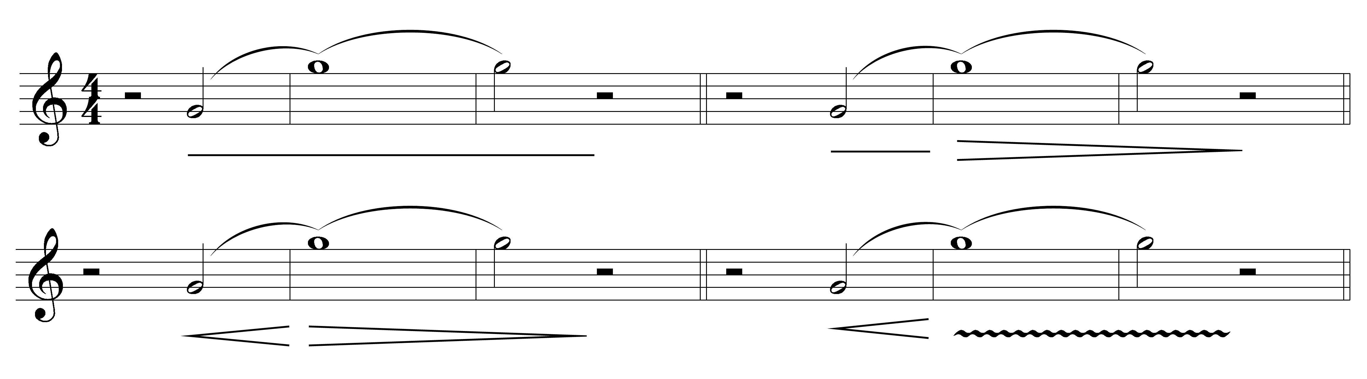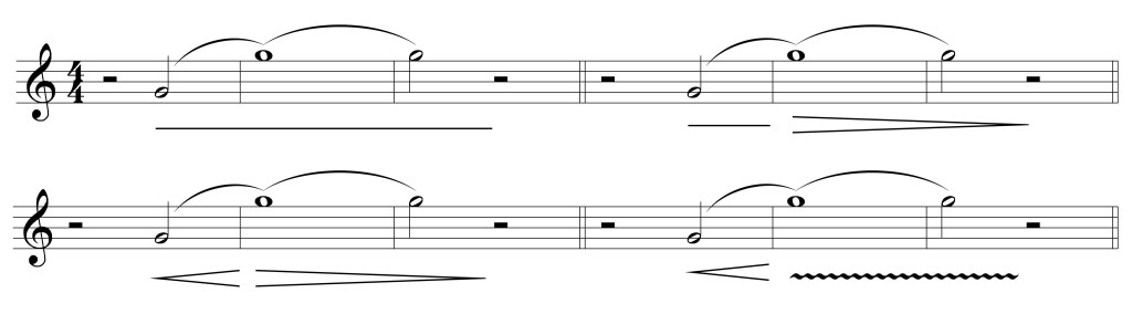 Cuando se trabajan las notas tenidas con cambio de intensidad —crescendo-diminuendo— hay que cuidar de que no varíen la afinación o la amplitud del sonido abriendo ligeramente la embocadura. De esta forma se evita aumentar de forma innecesaria la presión del aire y con ella su velocidad —lo que haría que la afinación subiera—, a la vez que estrecharía el sonido.