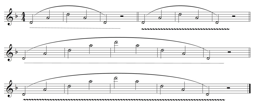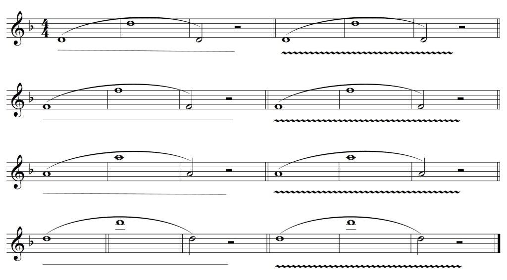 - Exercice 6.- A partir de la tonique, nous allons insérer la dominante entre celle-ci et l´octave, en alternant les répétitions avec et sans vibrato.