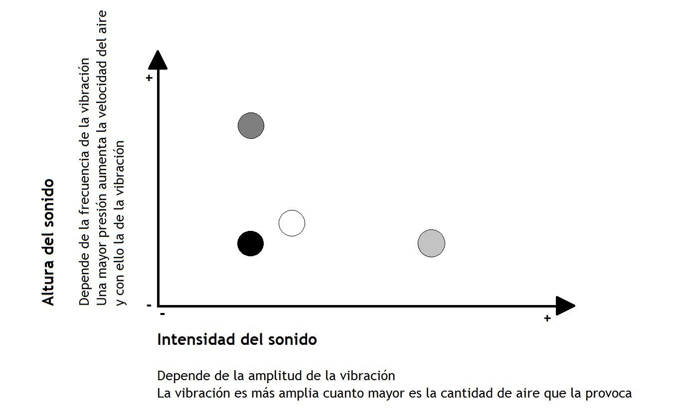 De ce point de vue purement analytique nous pourrions décrire le son comme doté de trois qualités fondamentales, le timbre, la hauteur et l’intensité, dont la combinaison provoque différentes sensations à l’oreille, tout comme les couleurs et les formes d’une peinture le font à travers la vue. Ensuite, nous expliquerons le fait physique qui détermine chacune de ces qualités de manière simplifiée mais suffisante pour le comprendre, et un peu plus loin nous expliquerons avec une série d’exercices comment chacune d’elles peut être contrôlée.