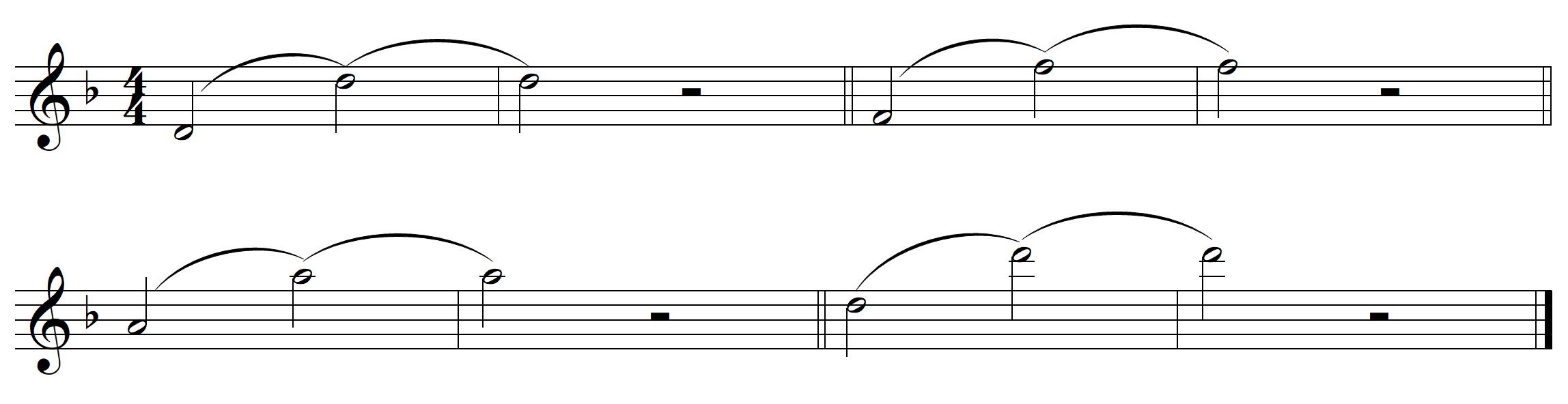 2.- Nous jouons la même note que dans l’exercice précédent, mais dans ce cas avec un crescendo-diminuendo, augmentant et relâchant progressivement le support dans le diaphragme. Il faut corriger doucement l’ouverture de l’embouchure pour compenser le différent flux d’air, mais il ne faut pas penser que c’est ce mouvement qui produit le changement de dynamique. Il faut veiller à ce que dans cet exercice seule l’intensité du son varie, pas sa justesse.