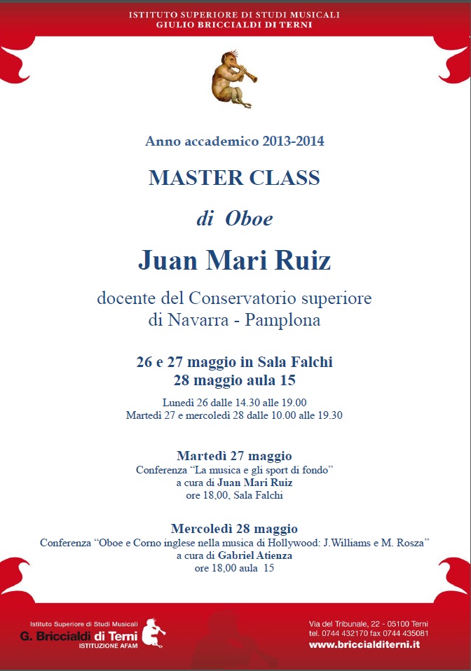 Además de mis clases regulares —presenciales y online— ofrezco habitualmente cursos de oboe dirigidos a alumnos de todos los niveles y conferencias relacionadas con la enseñanza de los instrumentos.